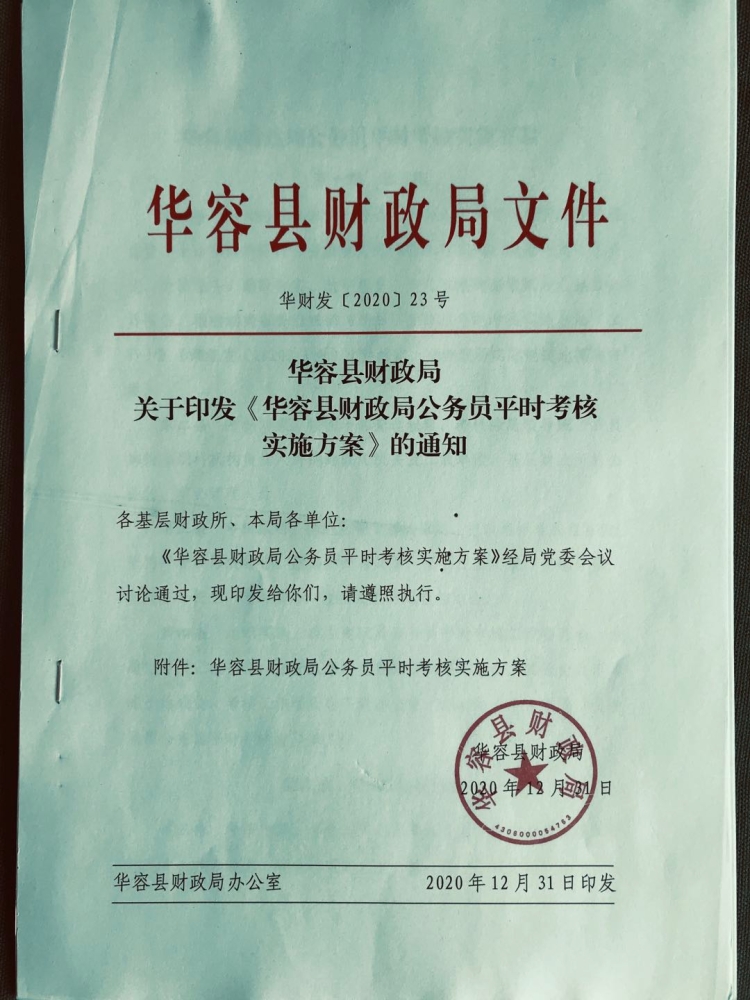 关于印发《华容县财政局公务员平时考核实施方案》的通知