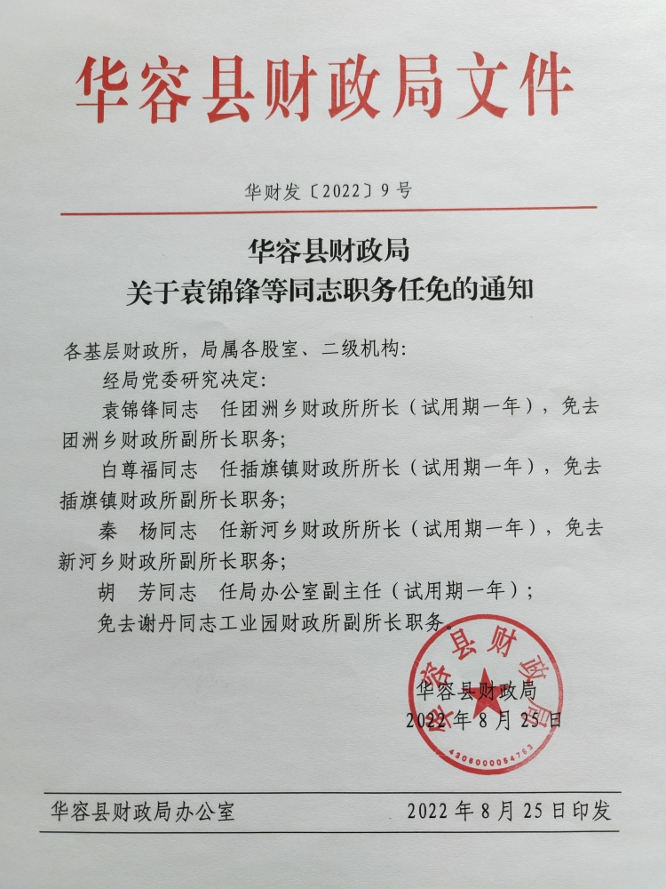 华容县财政局关于袁锦锋等同志职务任免的通知