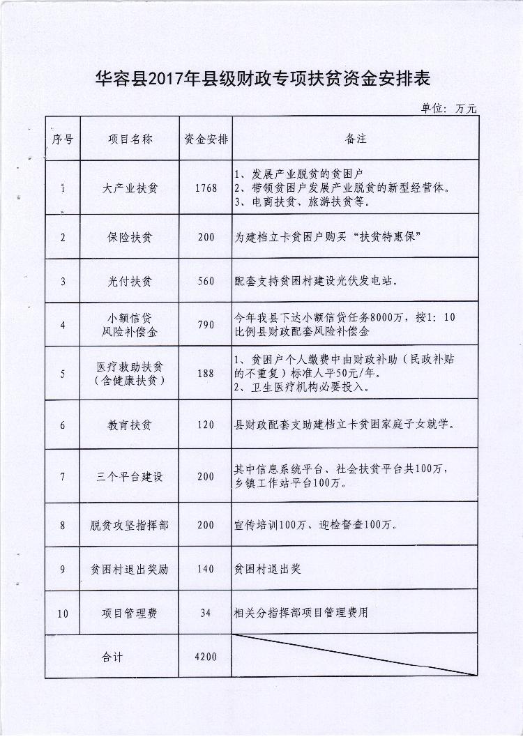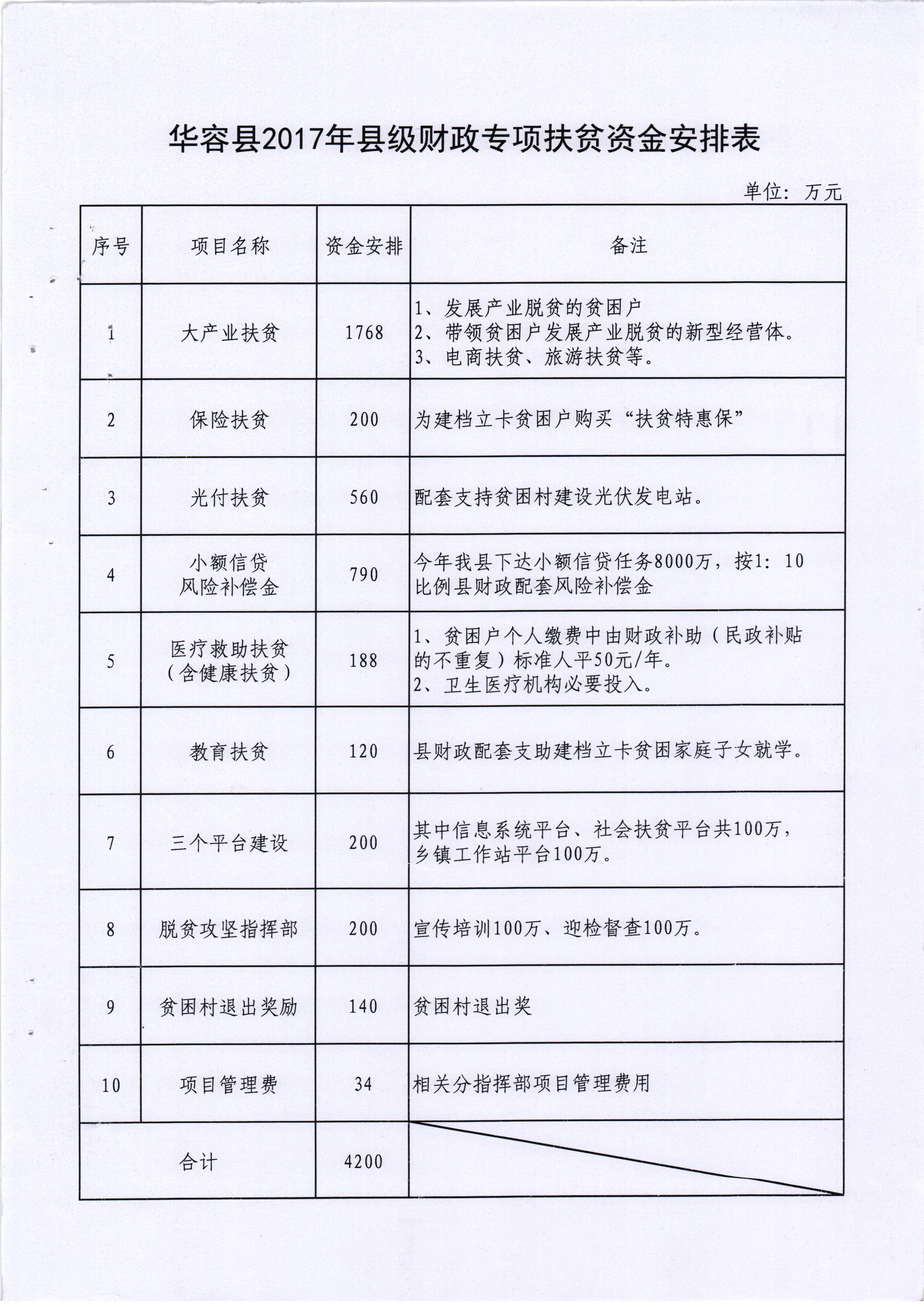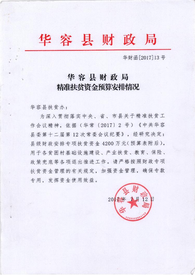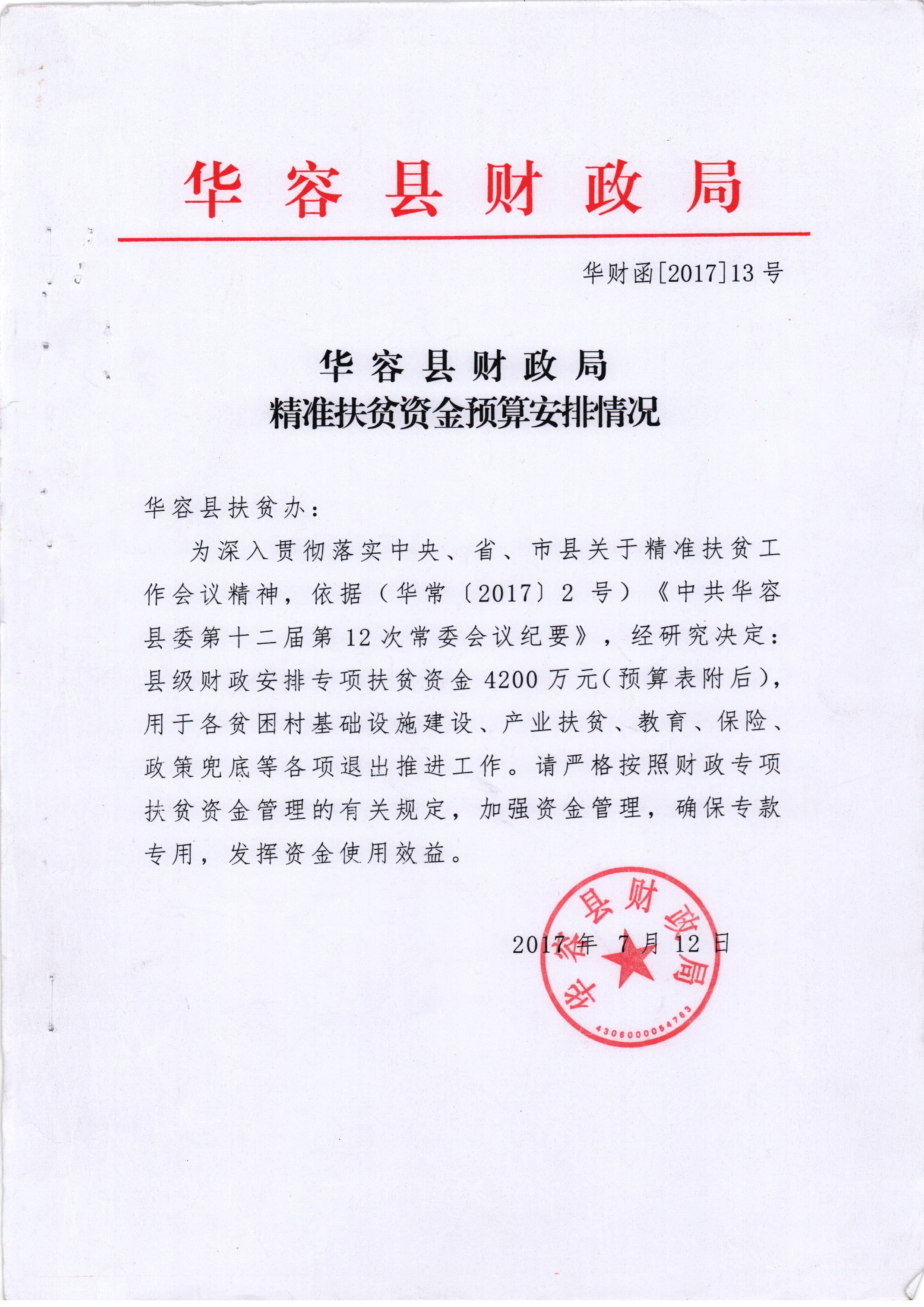 华容县财政局精准扶贫资金预算安排情况(华财函[2017]13号)