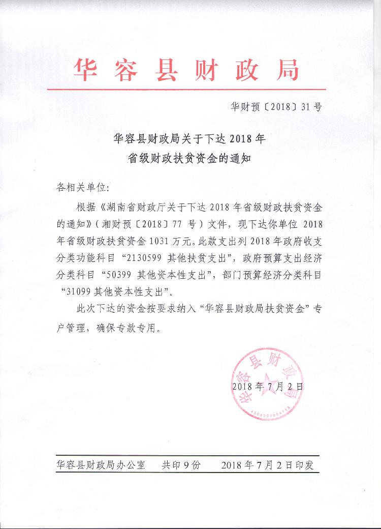 华容县财政局关于下达2018年省级财政扶贫资金的通知