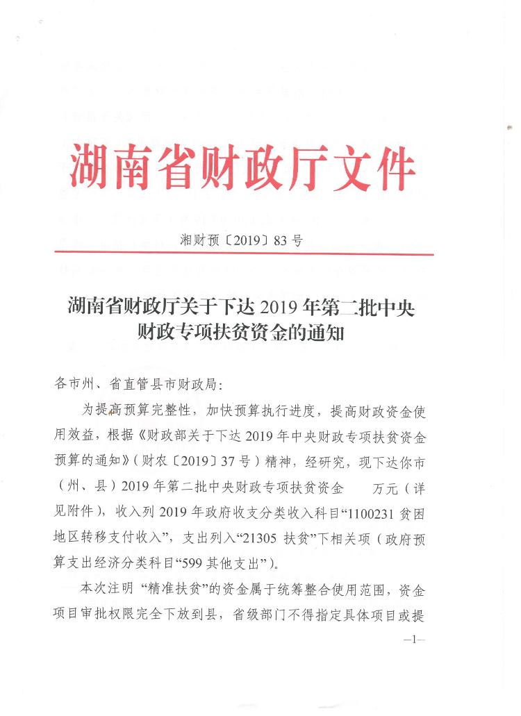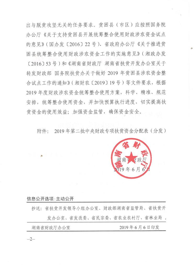 湖南省财政厅关于下达2019年第二批中央财政专项扶贫资金的通知