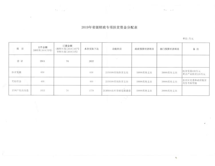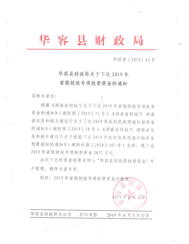 华容县财政局关于下达2019年省级财政专项资金的通知