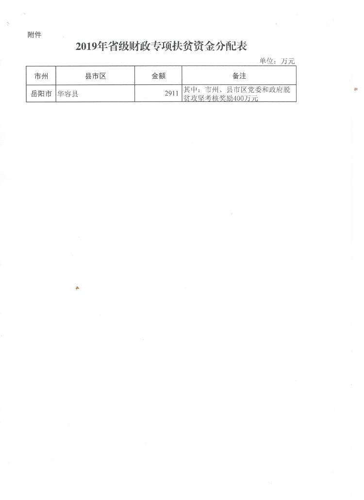湖南省财政厅关于下达2019年省级财政专项扶贫资金的通知(湘财预[2019]73号)