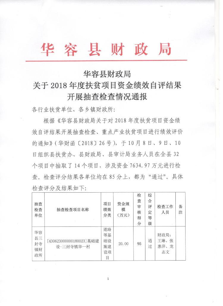 华容县财政局关于2018年度扶贫项目资金绩效自评结果开展抽查检查情况通报