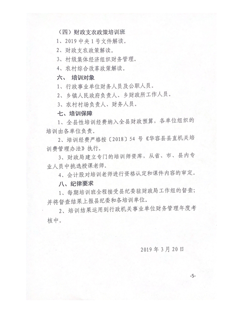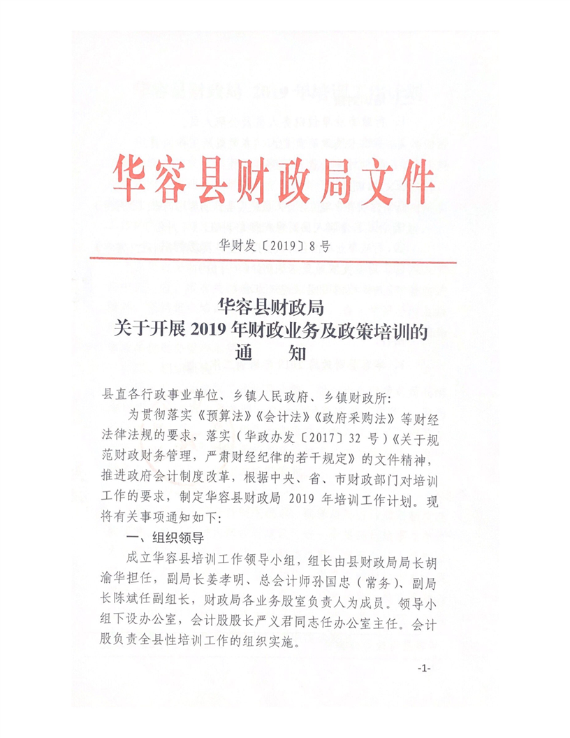 华容县财政局关于开展2019年财政业务及政策培训的通知