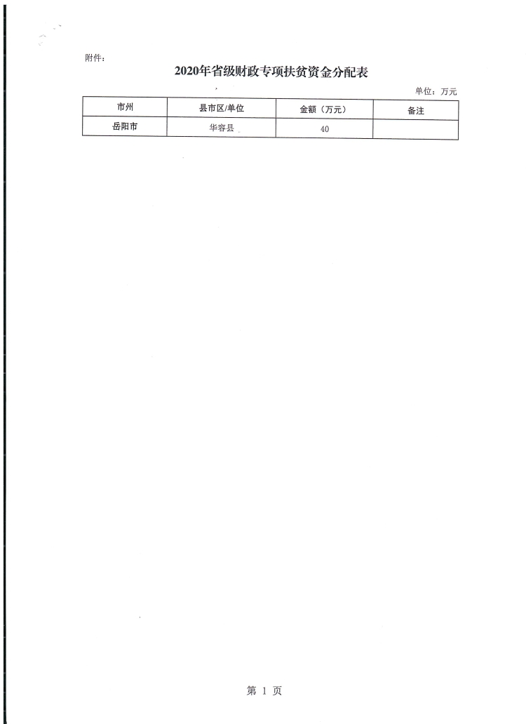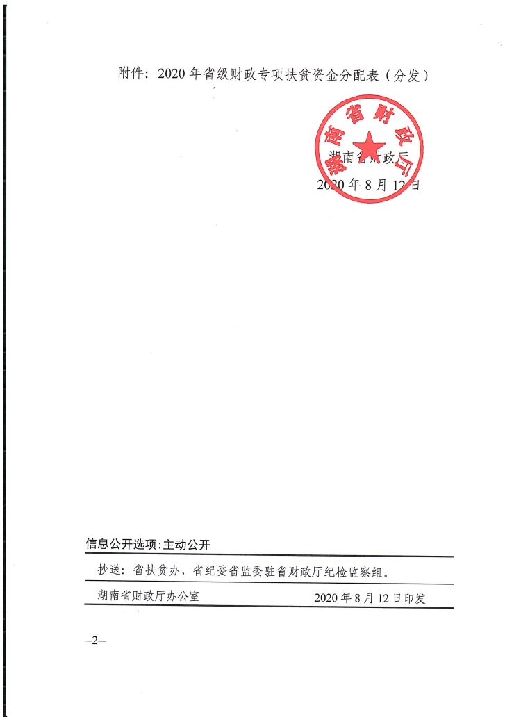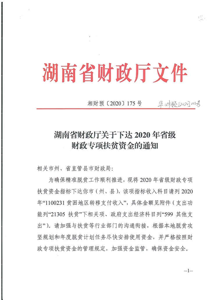 湖南省财政厅关于下达2020年省级财政专项扶贫资金的通知(湘财预〔2020〕175号)