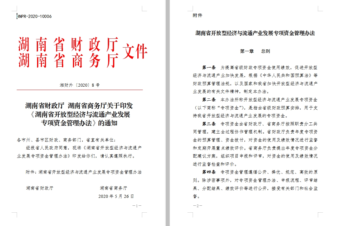 湖南省财政厅湖南省商务厅关于印发《湖南省开放型经济与流通产业发展专项资金管理办法》的通知