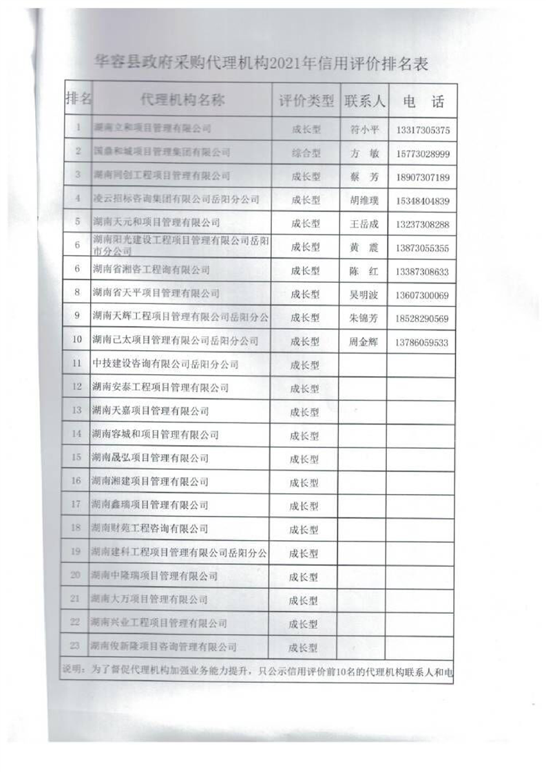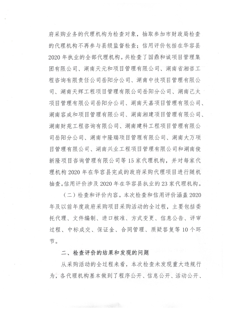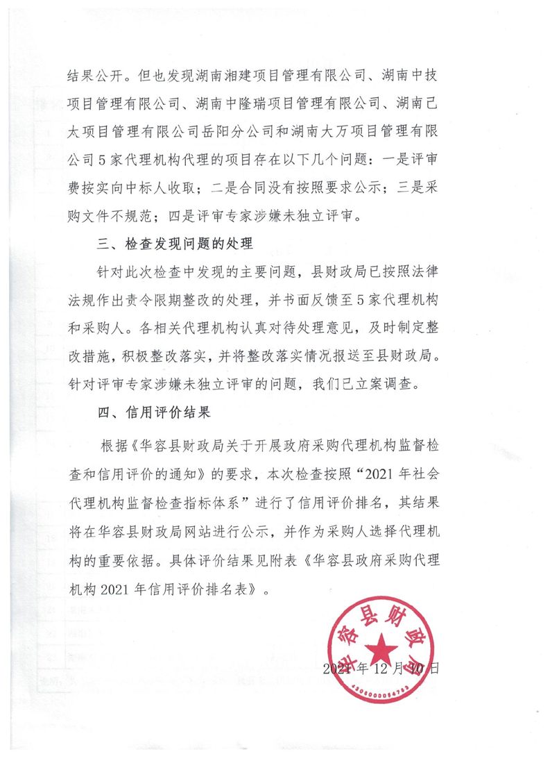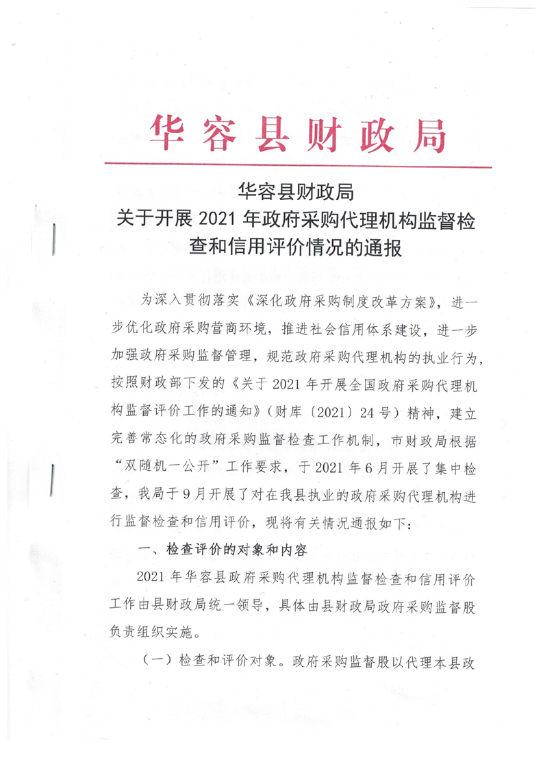 华容县财政局关于2021年政府采购代理机构监督检查和信用评价情况的通报