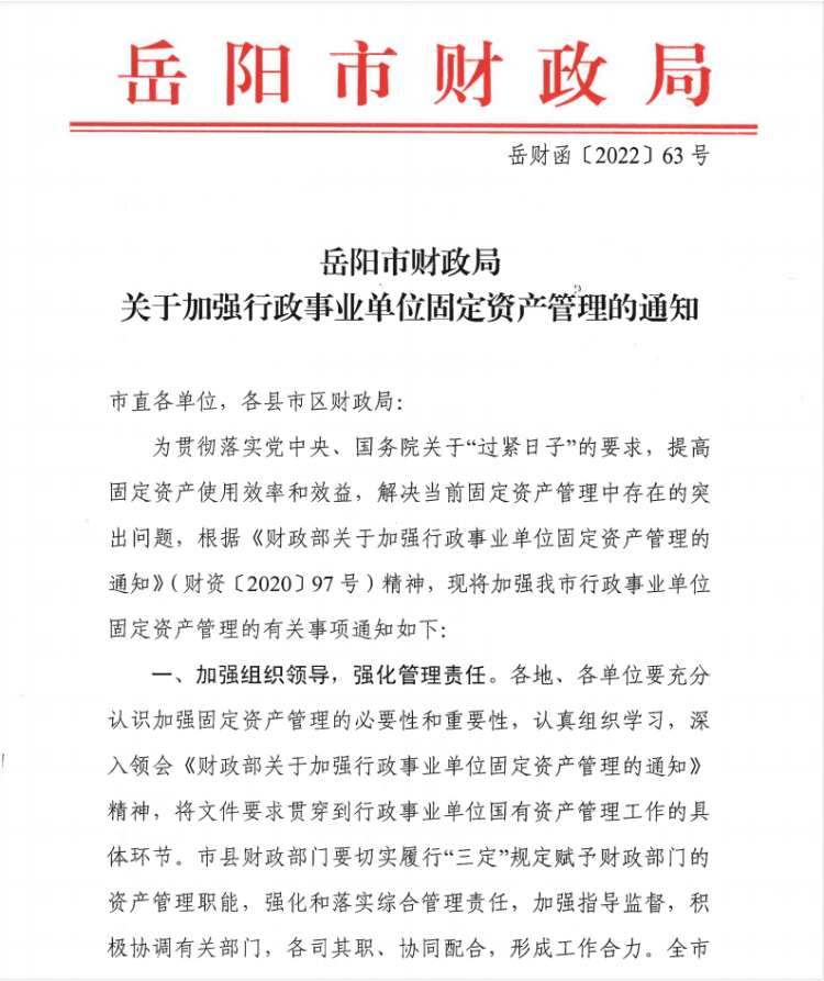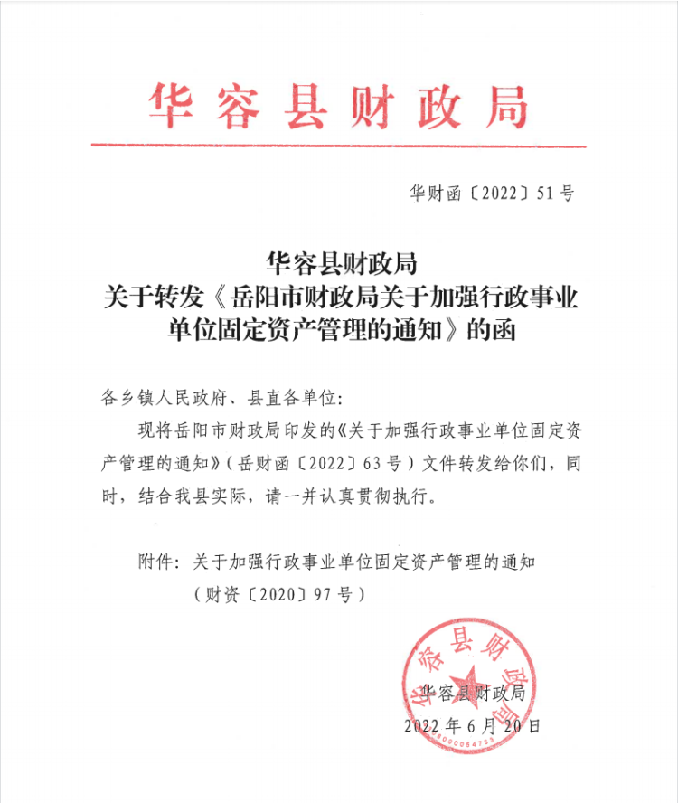 华容县财政局关于转发《岳阳市财政局关于加强行政事业单位固定资产管理的通知》的函