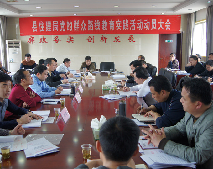 3月18日下午,县住建局召开开展党的群众路线教育实践活动动员大会。局党委书记、局长蒋志新作动员讲话,县委第二十督导组全体成员会到会指导,联点县领导县人大常委会副主任李新海出席会议并作重要讲话。局全体班子成员,机关党员干部,老干部代表,局属二级单位党组织负责人,局系统人大代表、政协委员等共计50人参加会议。