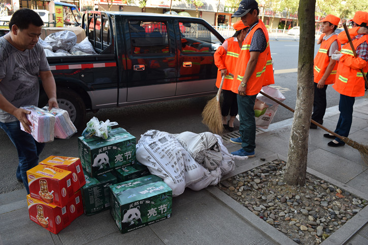 7月29日,县长喻文顶着炎炎烈日,看望慰问了高温下奋战在县城区工作一线的环卫工人、城管队员和义务劝导员,给他们送来防暑降温用品。县委常委、副县长蔡勋华,局长蒋志新陪同。