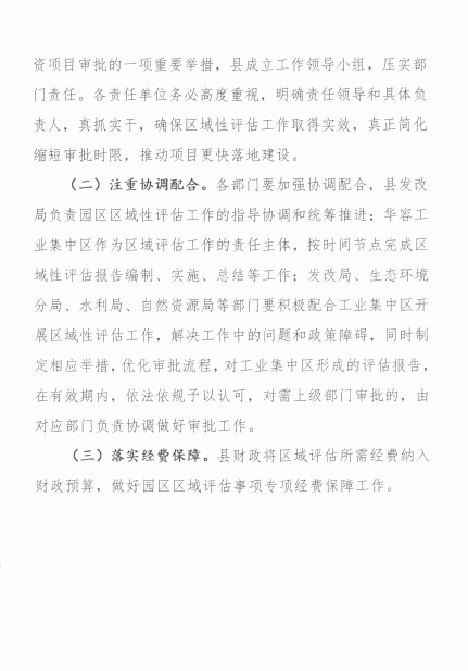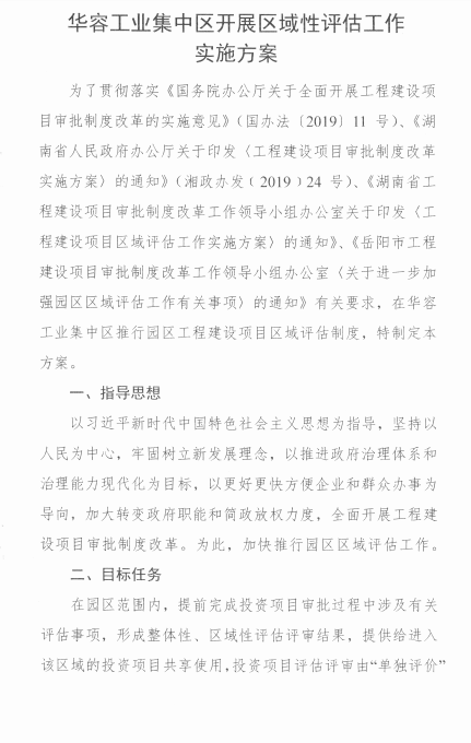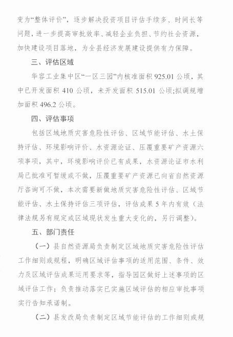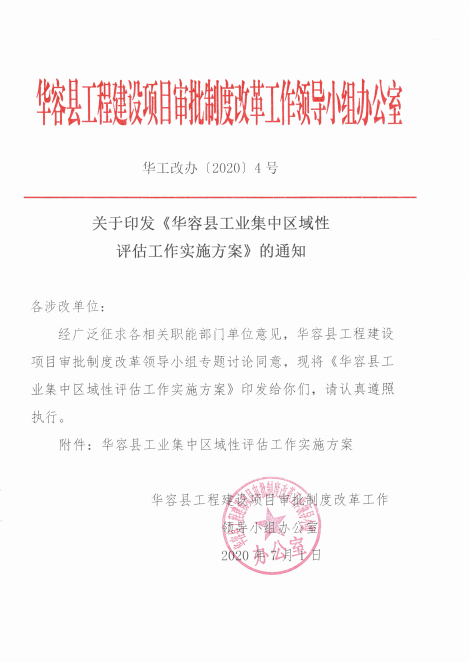 关于印发《华容县工业集中区域性评估工作实施方案》的通知
