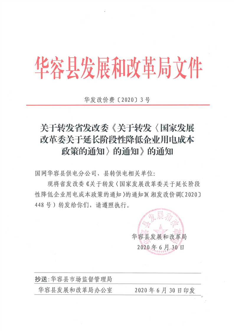 关于转发省发改委《关于转发〈国家发展改革委关于延长阶段性降低企业用电成本政策的通知〉的通知》的通知