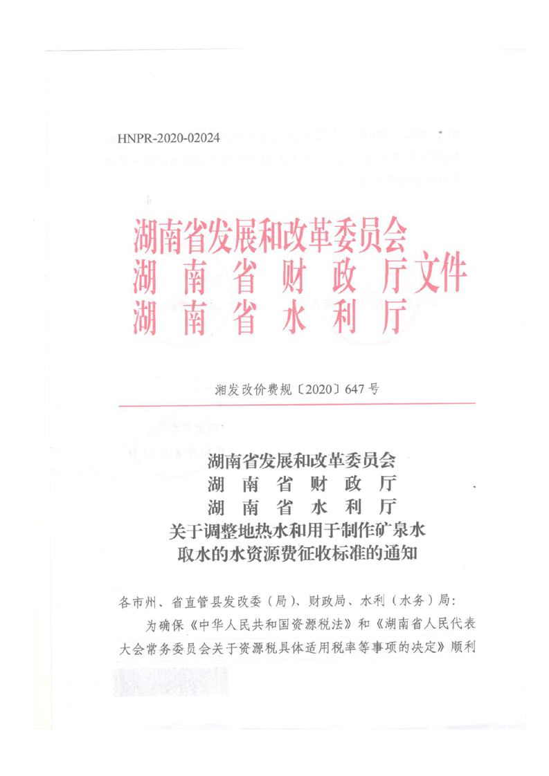 关于调整地热水和用于制作矿泉水取水的水资源费征收标准的通知