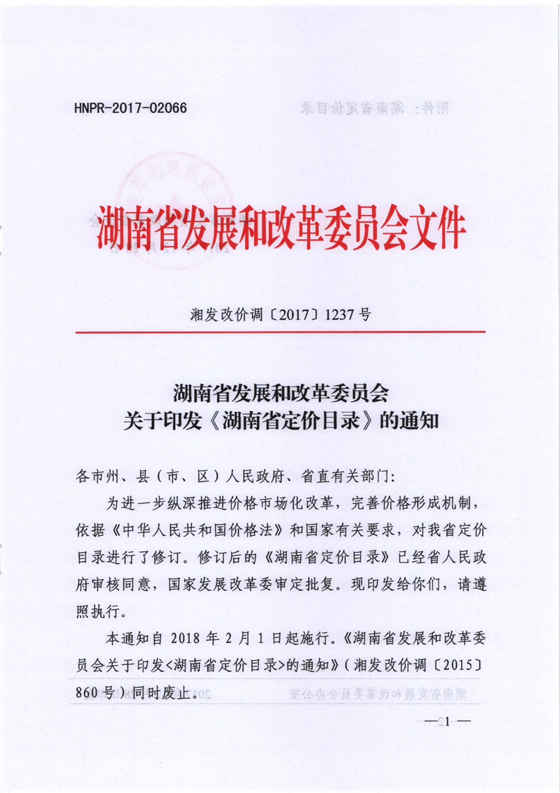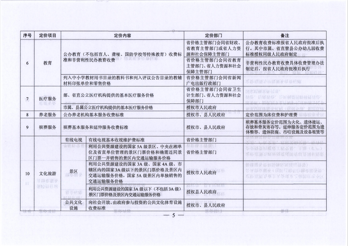 关于印发《湖南省定价目录》的通知