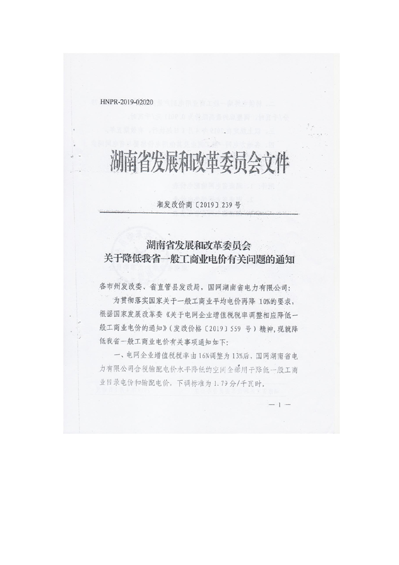 转发市发改委《关于转发省发改委〈关于降低我省一般工商业电价有关问题的通知〉通知》