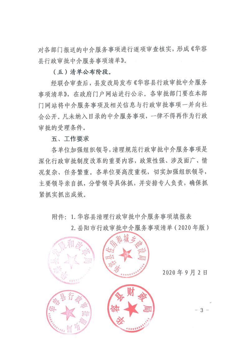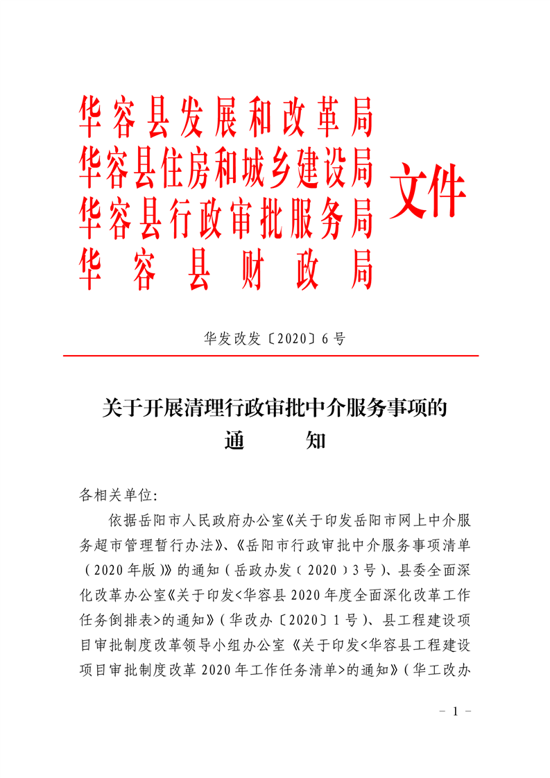关于开展清理行政审批中介服务事项的通知(华发改发〔2020〕6号)