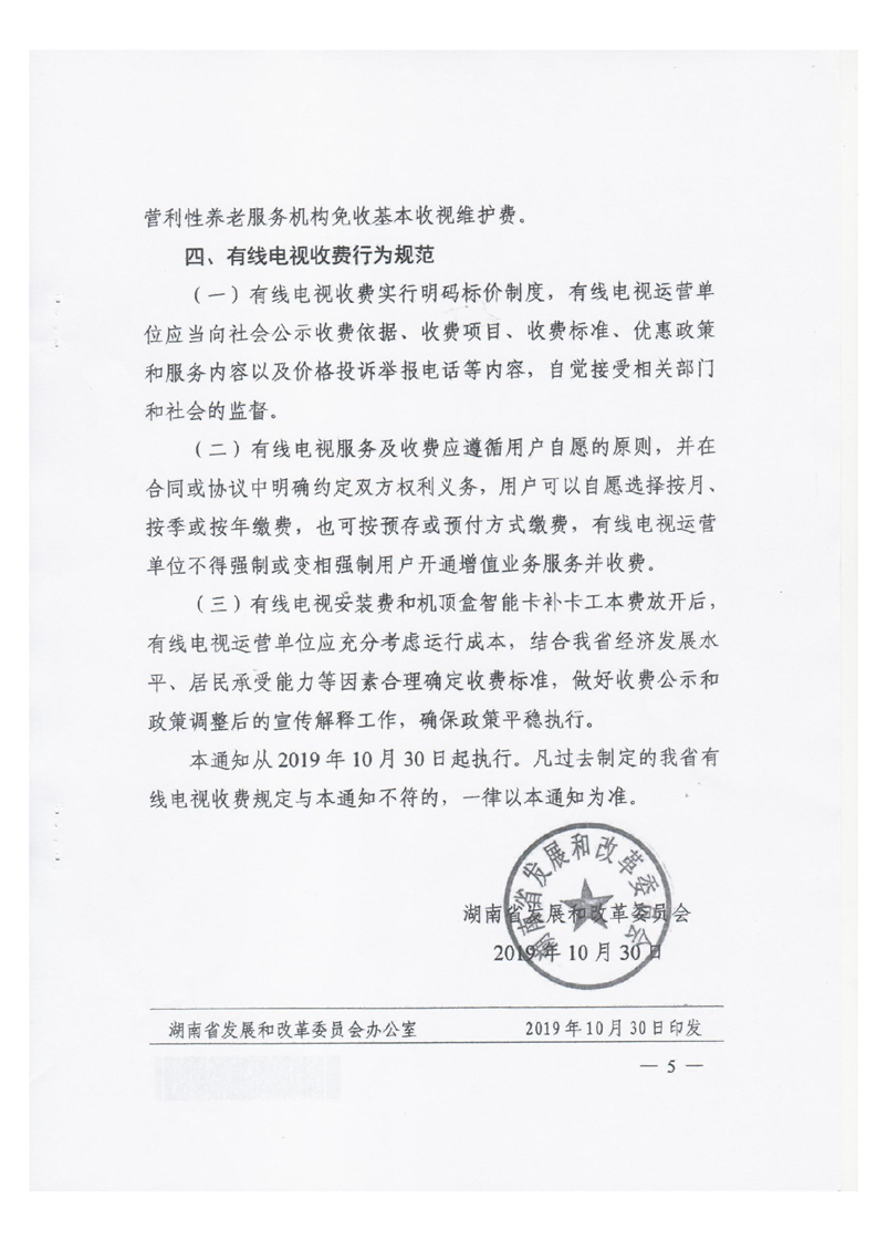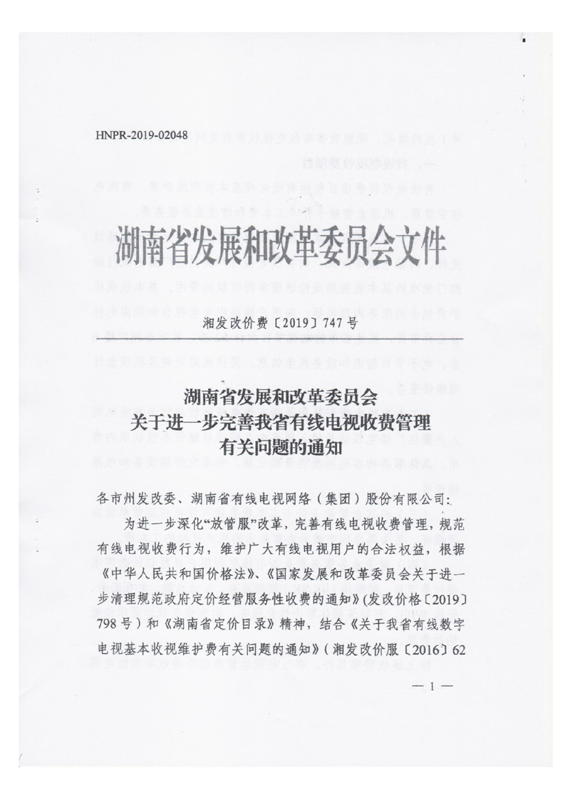 关于转发《湖南省发展和改革委员会〈关于进一步完善我省有线电视收费管理有关问题的通知〉的通知》华发改价费〔2019〕11号