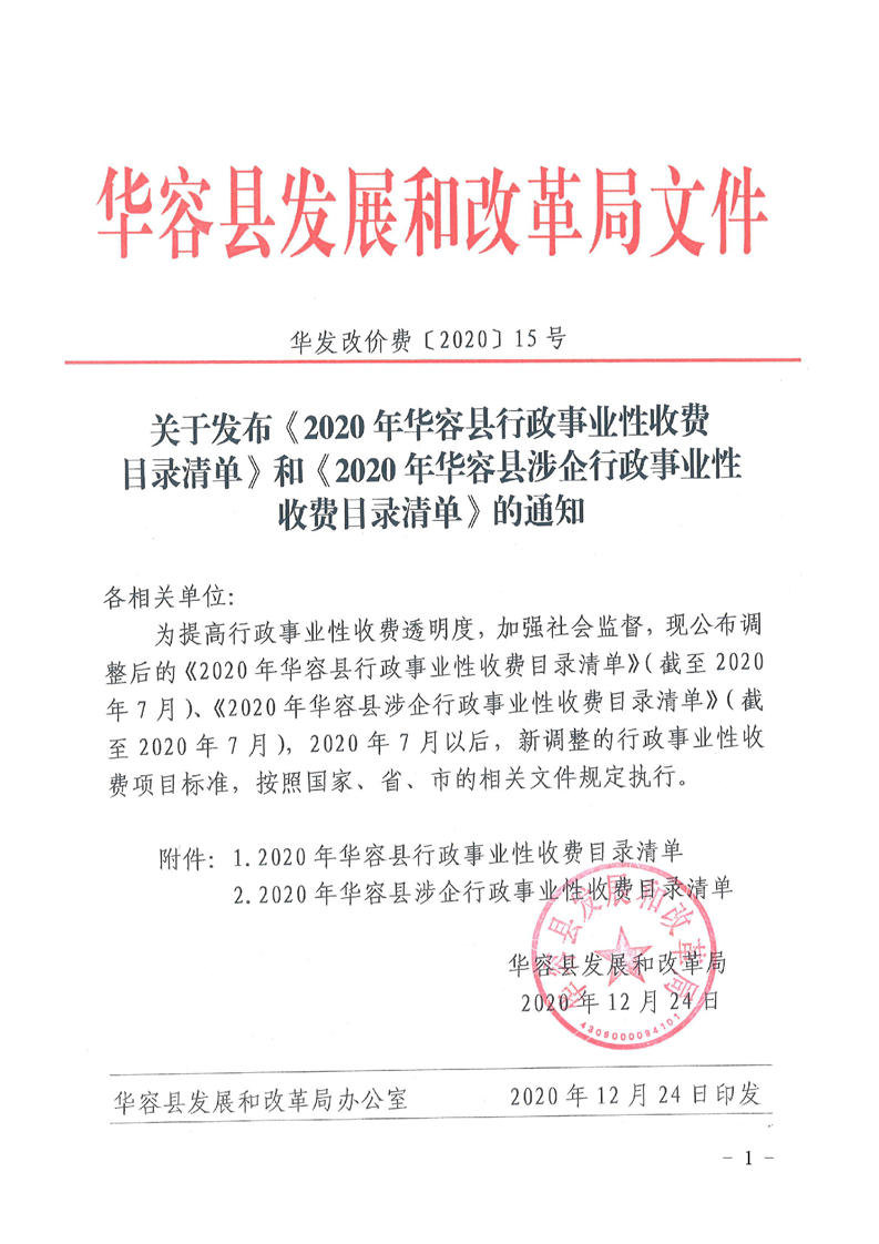 2020年华容县行政事业性收费目录清单(华发改价费〔2020〕15号)