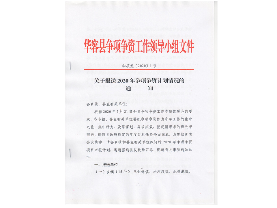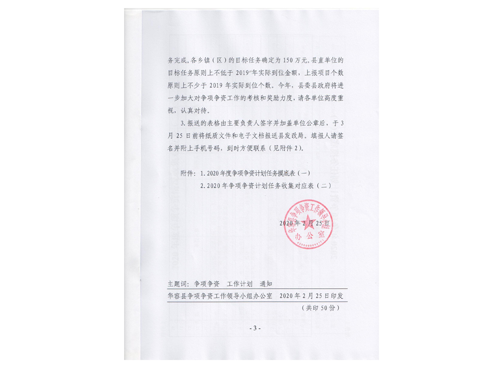 关于报送2020年争项争资计划情况的通知