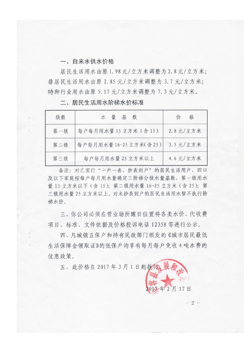 关于我县城区实行自来水阶梯水价改革及调整自来水供水价格的通知