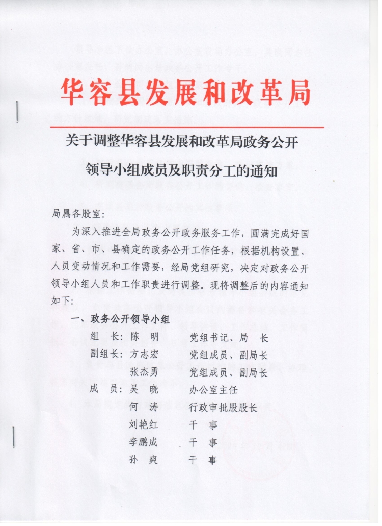关于调整华容县发展和改革局政务公开领导小组成员及职责分工的通知