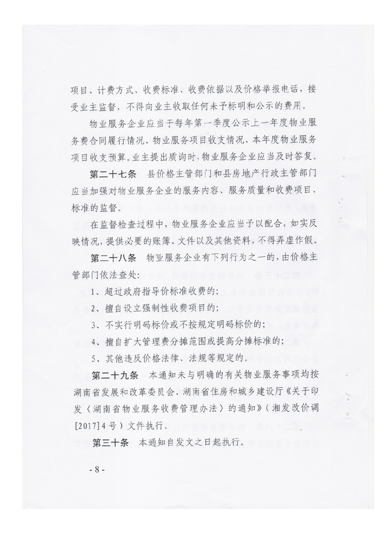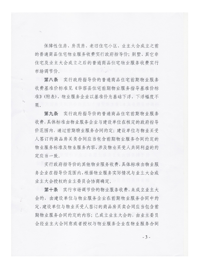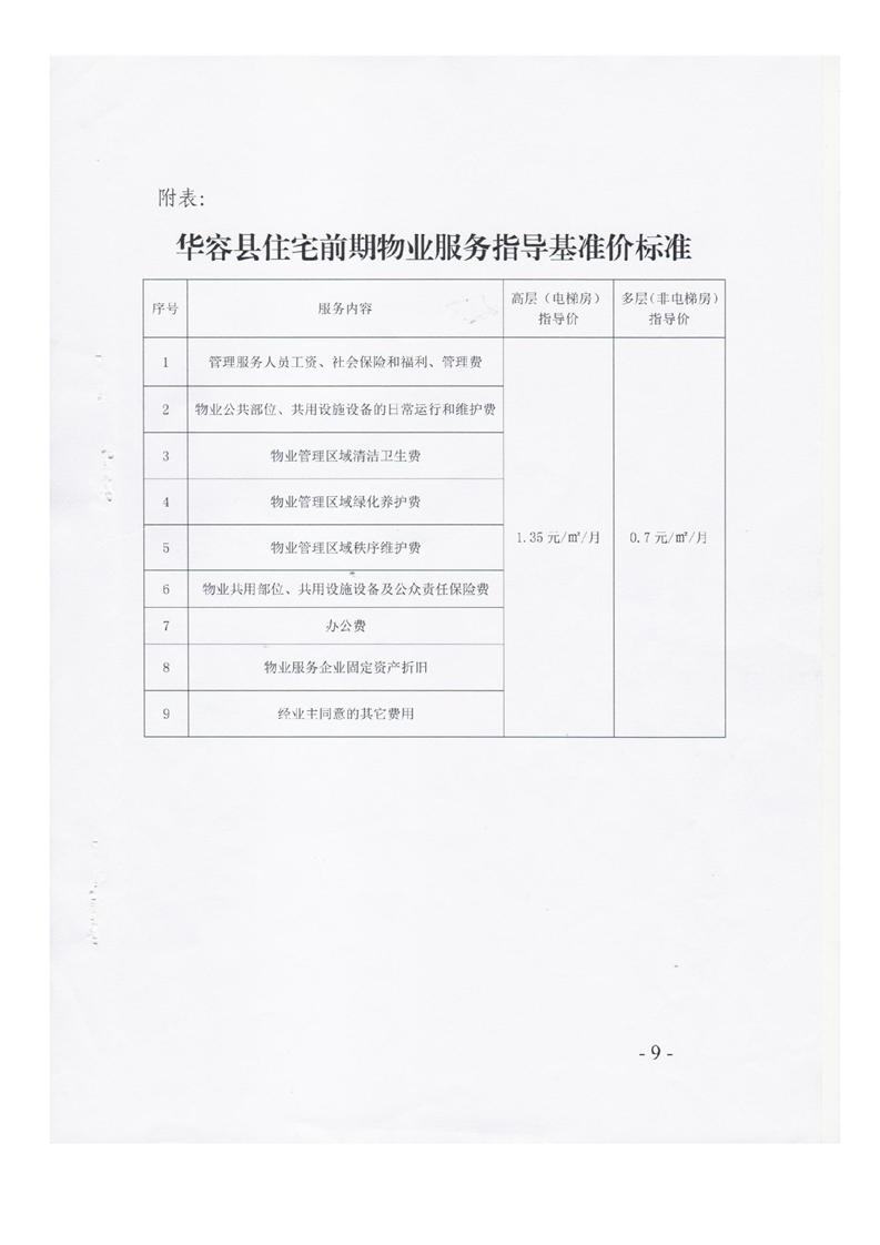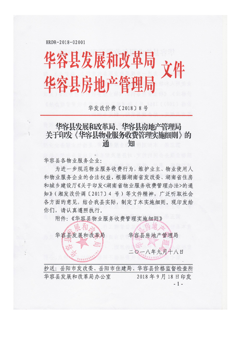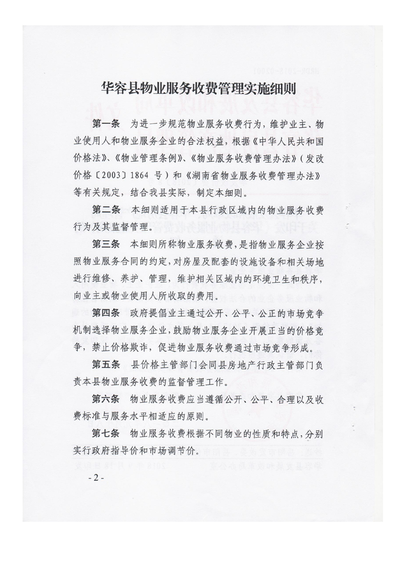 《华容县物业服务收费管理实施细则》华发改价费(2018)8号