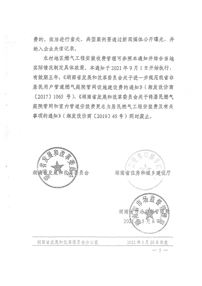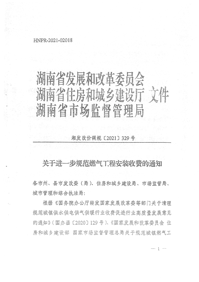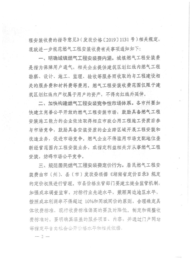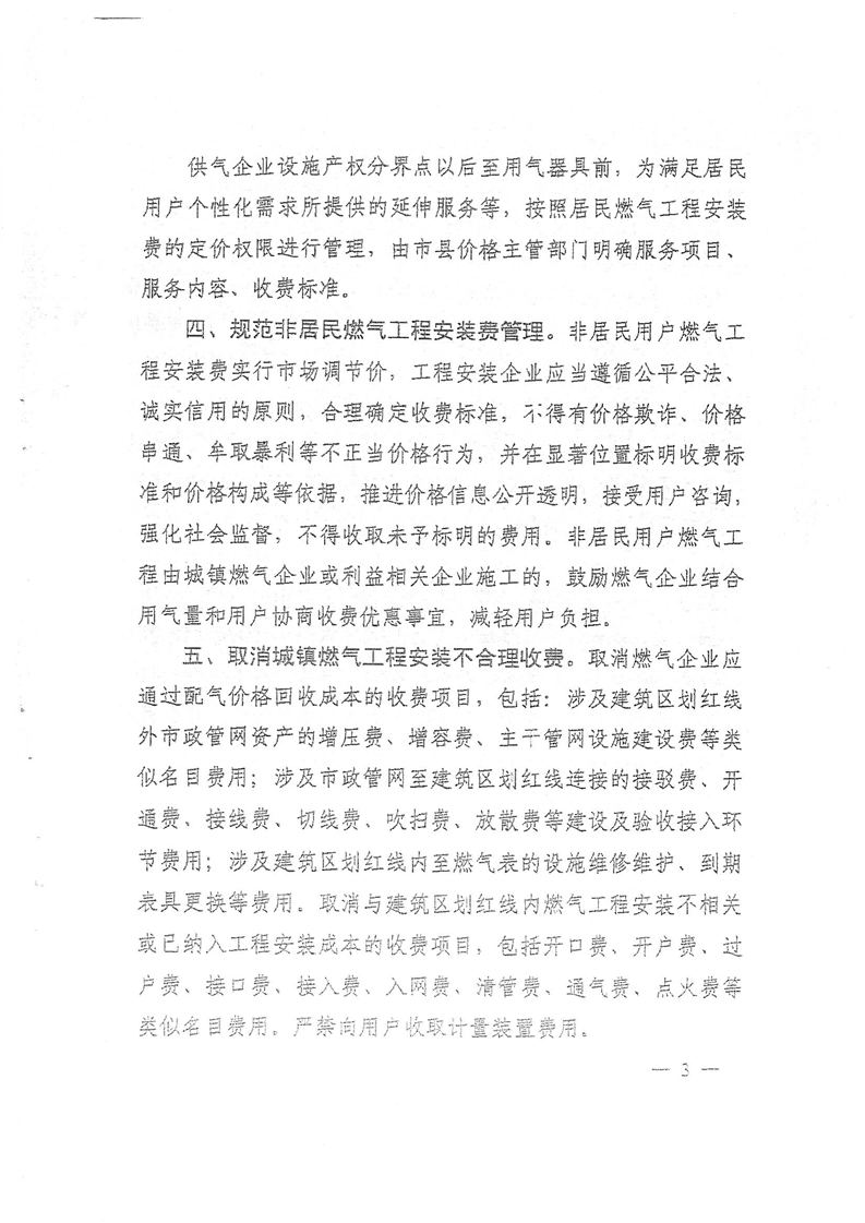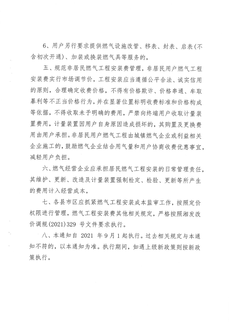 2021年关于进一步规范我市居民燃气工程安装费有关问题的通知