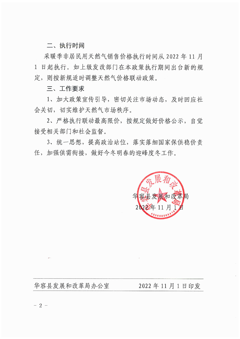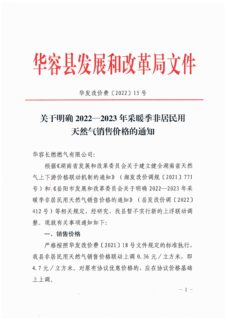 2022-2023年采暖季非居民用天然气销售价格的通知
