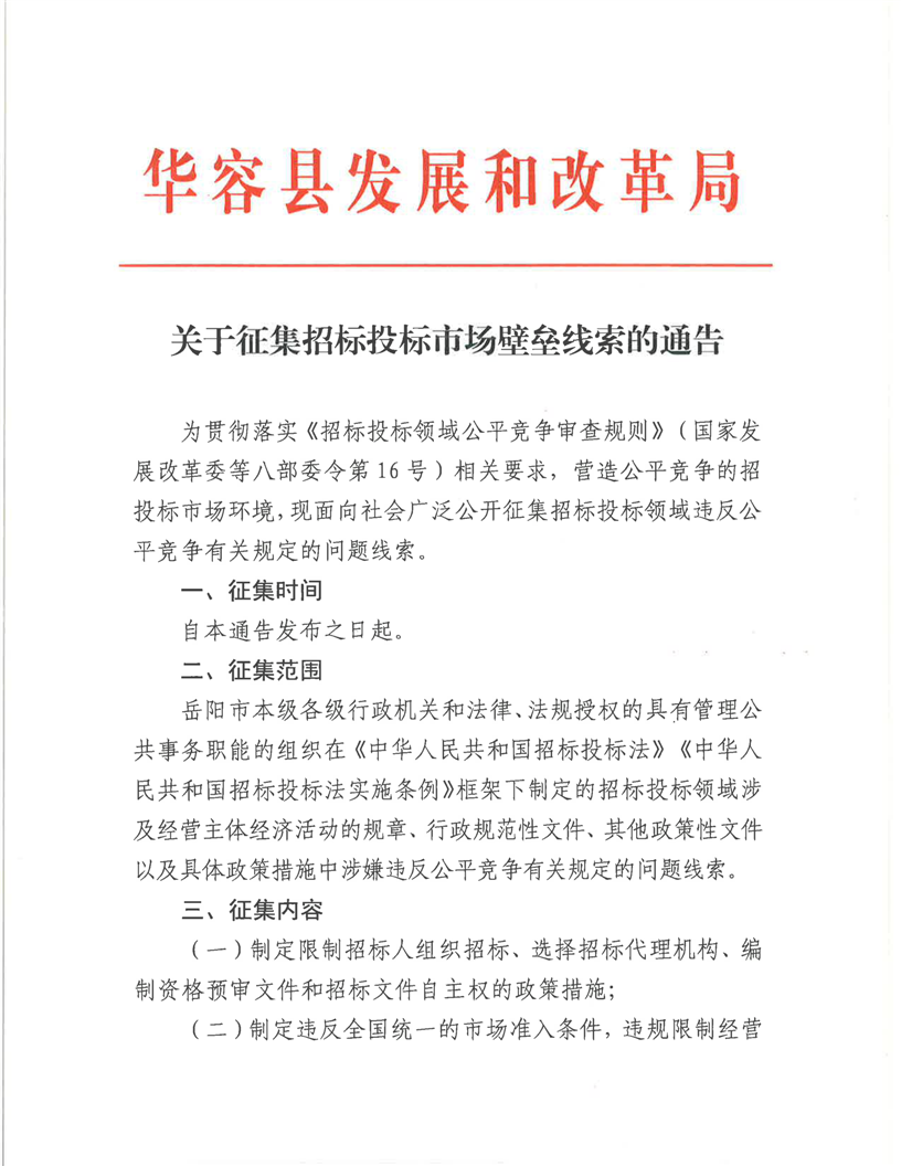 关于征集招标投标市场壁垒线索的通告