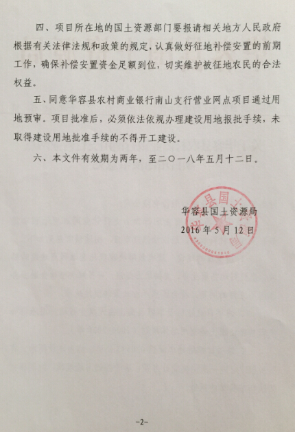 关于华容县农村商业银行南山支行营业网点项目用地预审意见