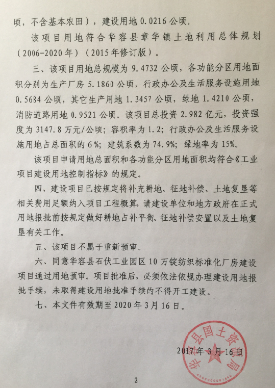 关于华容县石伏工业园区10万锭纺织标准化厂房建设项目用地预审意见