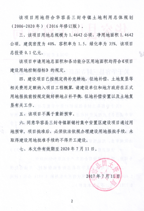 关于华容县三封寺镇新辅村集中安置区建设项目用地预审意见