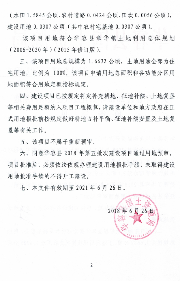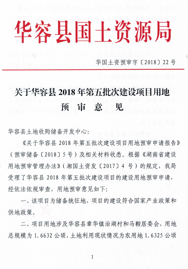 关于华容县2018年第五批次建设项目用地预审意见