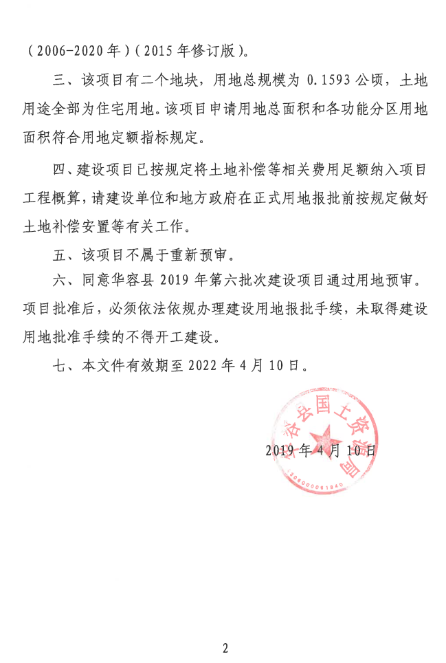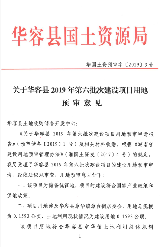 关于华容县2019年第六批次建设项目用地预审意见