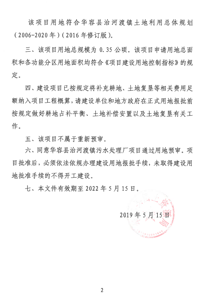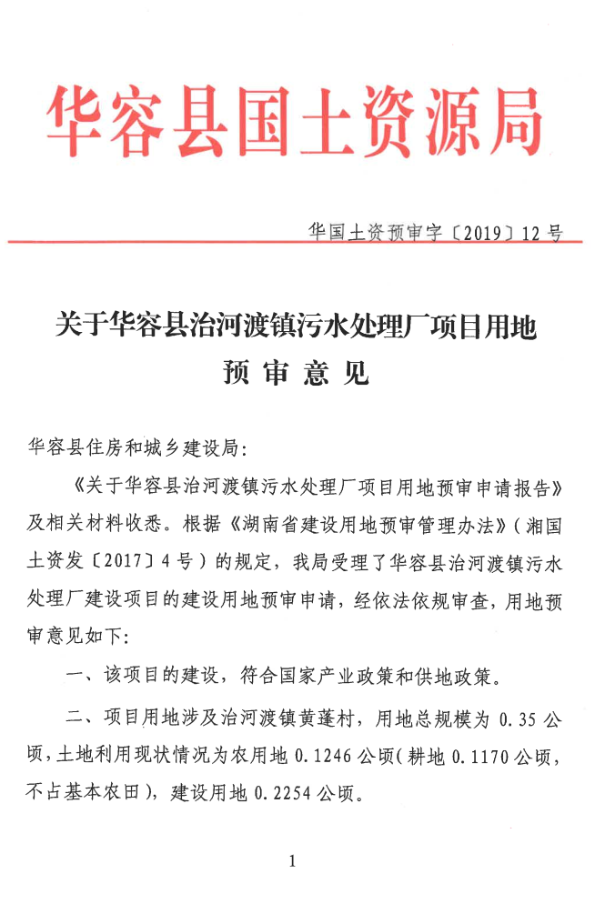 关于华容县治河度镇污水处理厂项目用地预审意见