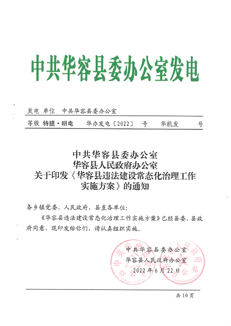 关于印发《华容县违法建设常态化治理工作实施文案》的通知