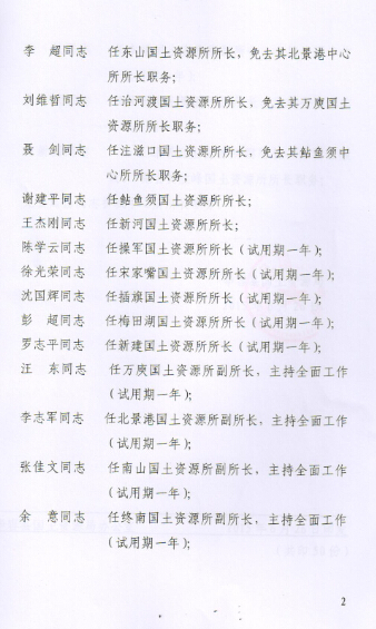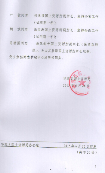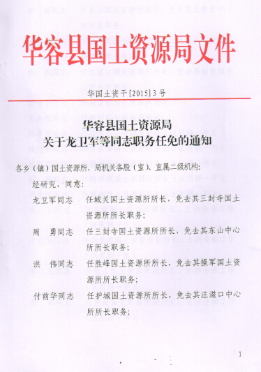 华容县国土资源局关于龙卫军等同志职务任免的通知