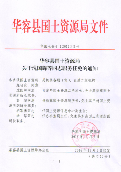 华容县国土资源局关于沈国辉等同志职务任免的通知