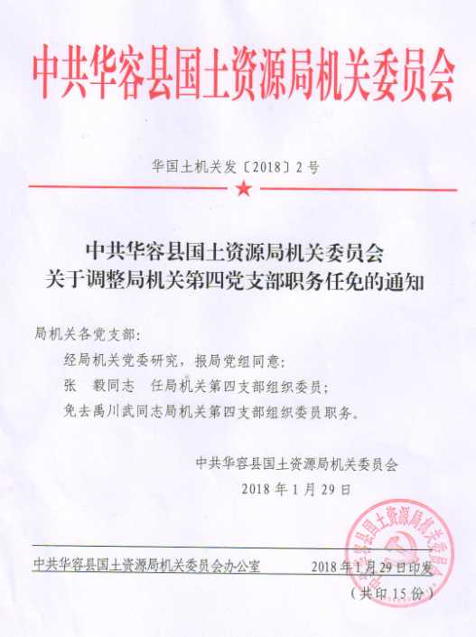 中共华容县国土资源局机关委员会关于调整局机关第四党支部职务任免的通知