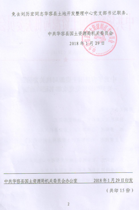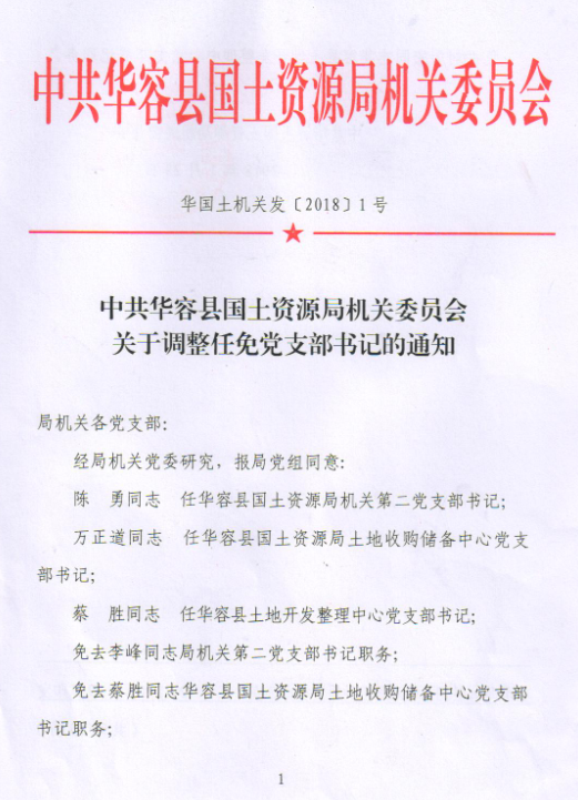 中共华容县国土资源局机关委员会关于调整任免党支部书记的通知