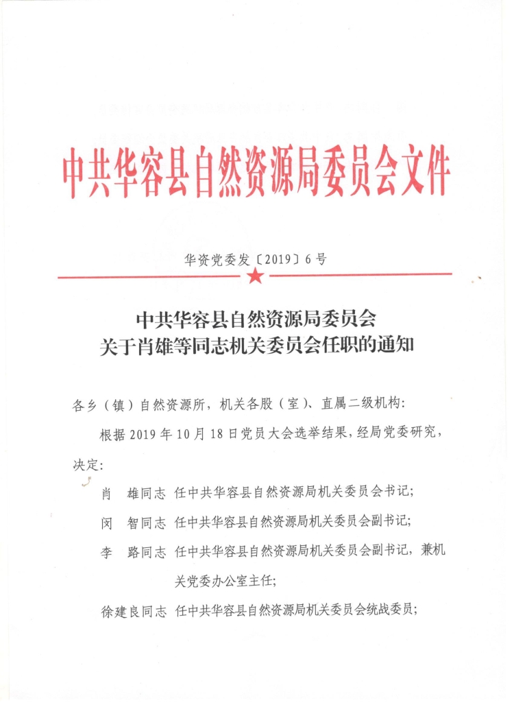 中共华容县自然资源局委员会关于肖雄等同志机关委员会任职的通知