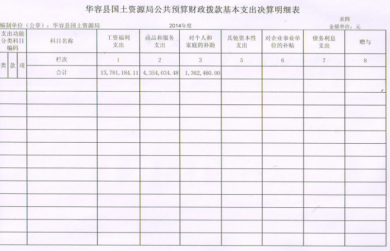 华容县国土资源局公共预算财政拨款基本支出决算明细表