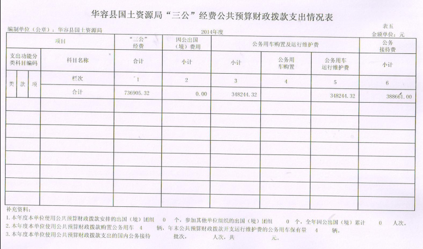 华容县国土资源局“三公”经费公共预算财政拨款支出情况表