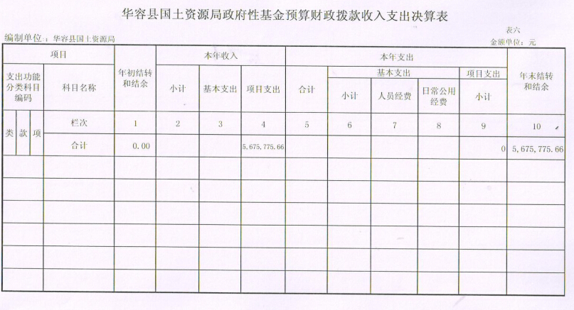 华容县国土资源局政府性基金预算财政拨款收入支出决算表