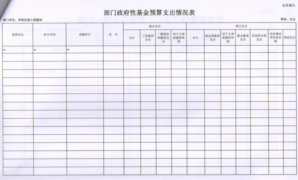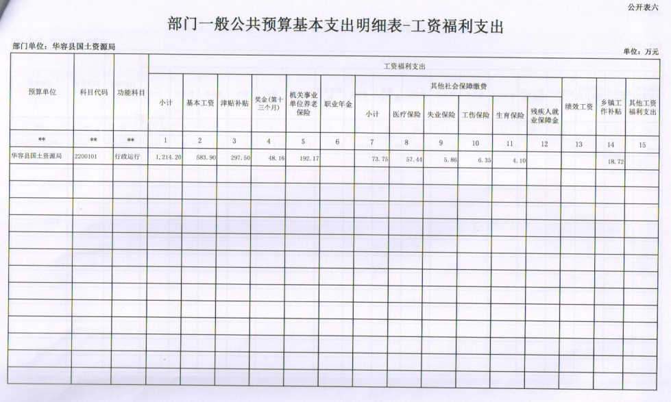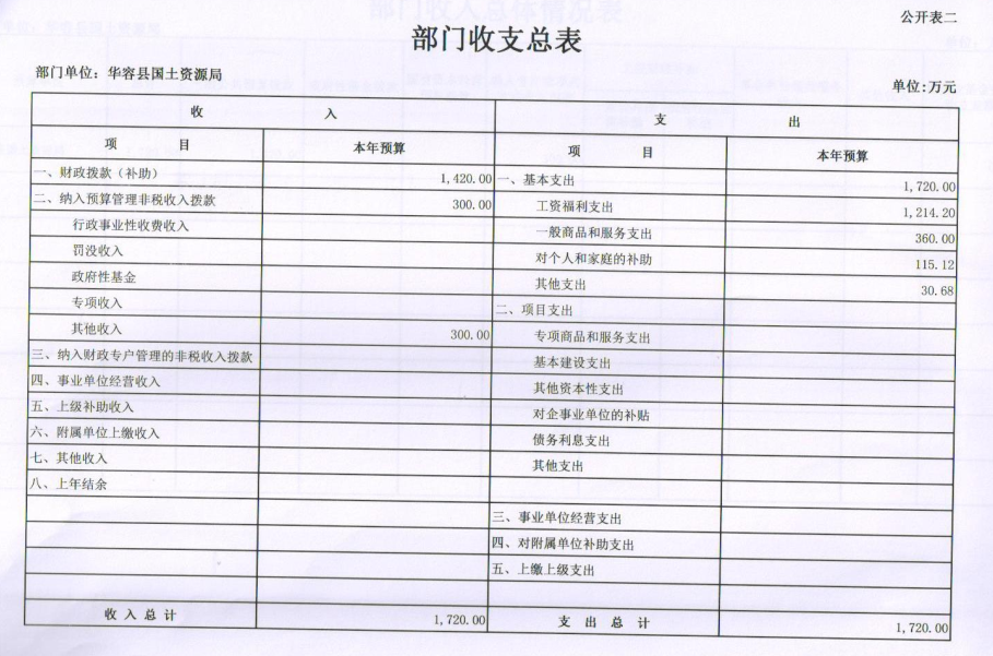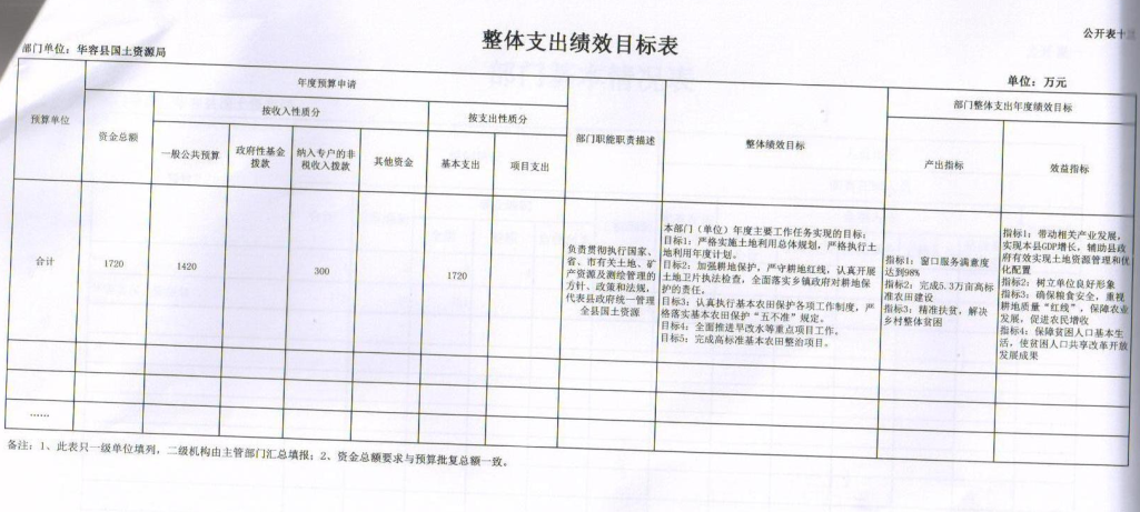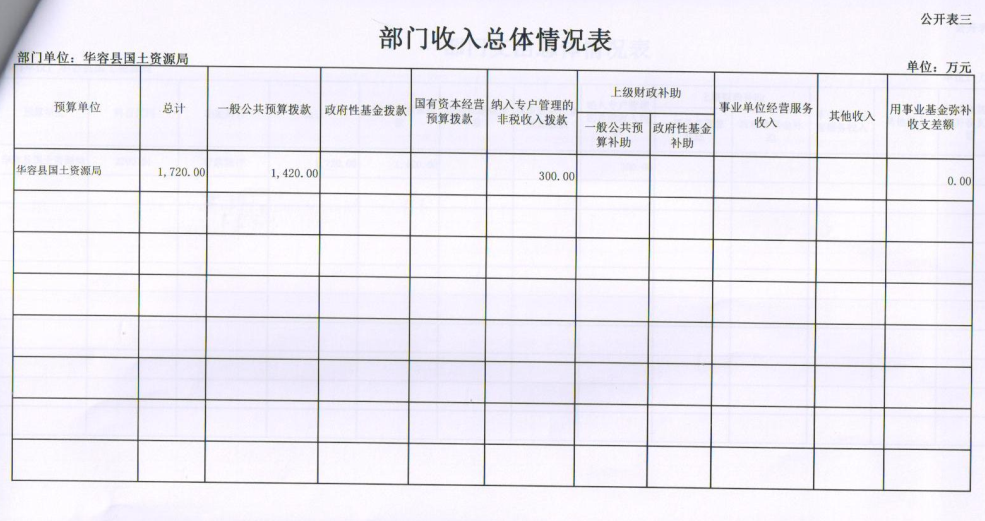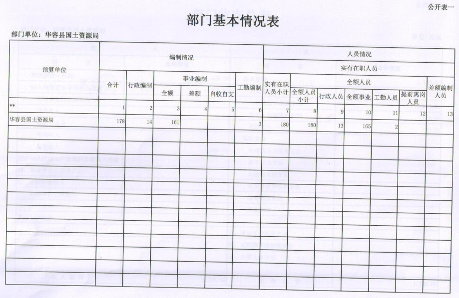 华容县国土资源局2017年部门预算基本情况表(表1-表13)