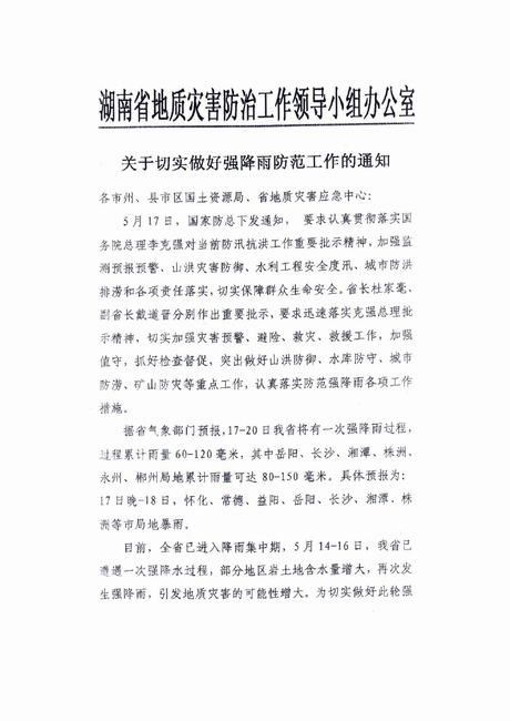 关于切实做好5月17日-20日强降雨防范工作的通知