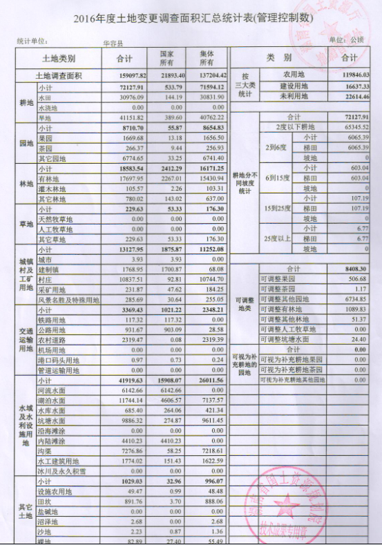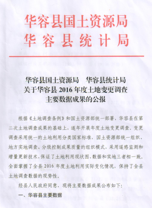 关于华容县2016年度土地变更调查主要数据成果的公报