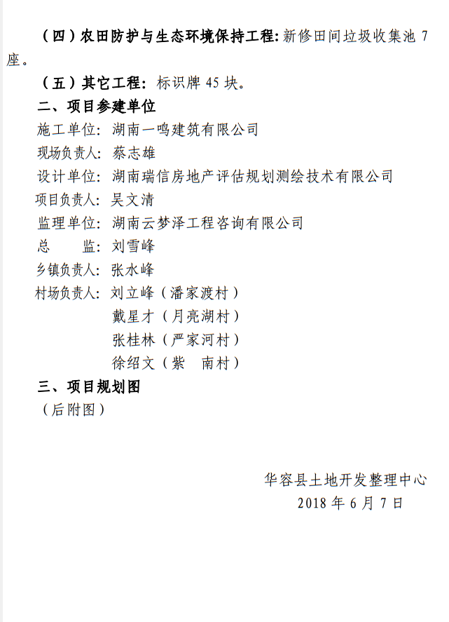 华容县治河渡镇潘家村等四个村农村建设用地复垦项目工程量和工程预算信息公告