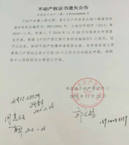 不动产权证书遗失公告【房屋所有权证(郭文辉)】
